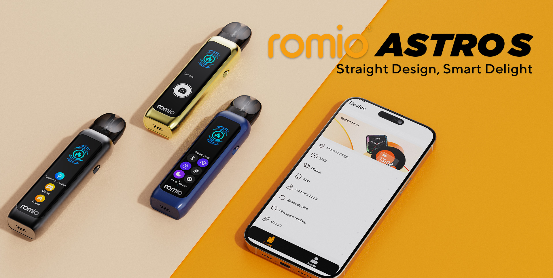 Romio ASTRO S, with its straight and sleek design, brings next-generation smart vaping to your fingertips. You can take photos, change themes via the Romio C. App, and enjoy more intelligent functionality. Paired with the ASTRO Pod, the flavor will remain consistently sophisticated and layered.